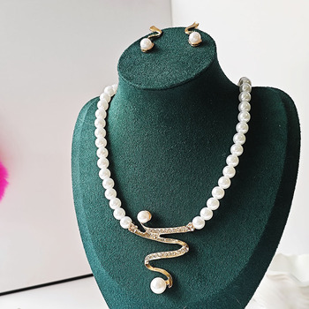 Großhandel neue Perlenkette Ohrringe Mode Perle Diamant Halskette Ohrringe Halskette Set