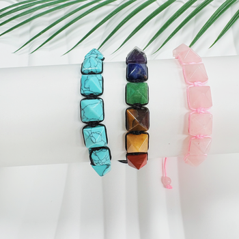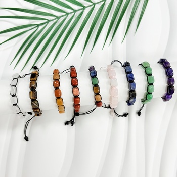Hot-selling Mão-tecido sete cores pulseira de cristal, pedra retangular Yoga Bracelet