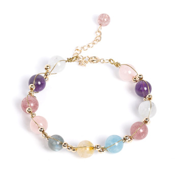 Pulsera de cristal, cristal de fresa, cristal rosa, citrino amarillo, amatista, aguamarina, regalo de joyería de cristal blanco