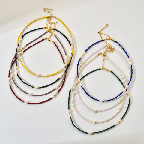 Collar de moda de verano con cuentas de arroz, collar con lazo, cadena de clavícula, cadena de cuentas, collares de joyería fina