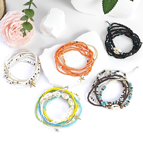 Tobilleras de cuentas hechas a mano con cuentas de arroz fino para mujer, joyería de playa de verano, tobillo colorido bohemio