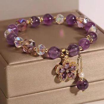 Alta calidad elegante Jade regalo religioso cuentas de amatista colgante de cristal pulsera número geométrico brazaletes de moda