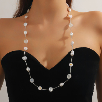 Joyería de moda chapado en oro estilo elegante collar largo de perlas para mujer Cadena de suéter multicapa