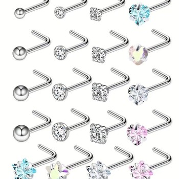 Moda semplice set di chiodi per naso di alta qualità a forma di L asta curva titanio acciaio artiglio colore zircone unghie naso all'ingrosso