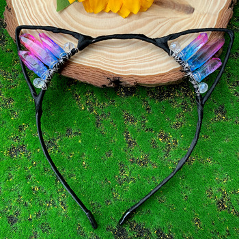 Fascia corona Wicca Wicca luna in cristallo naturale a cinque colori, fascia e copricapo blu intenso e nero