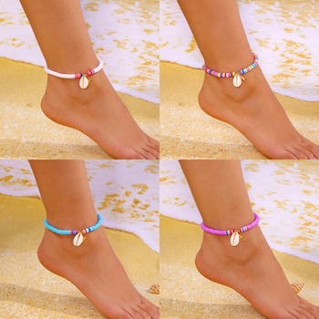 カラフルなビーズのシェルフットチェーン、柔らかい陶器の破片、エスニックスタイルシェルココナッツツリービーチフットチェーンの卸売