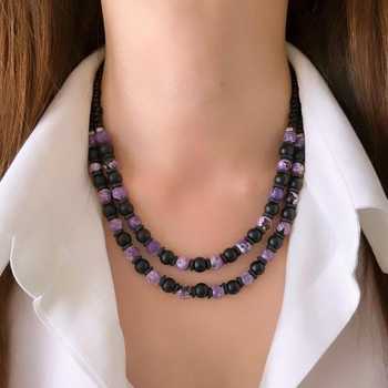 Mor akik mat oniks kolye, mor siyah Modern ve gotik çok katmanlı takı, kız arkadaşı için boncuklu doğal taş hediye